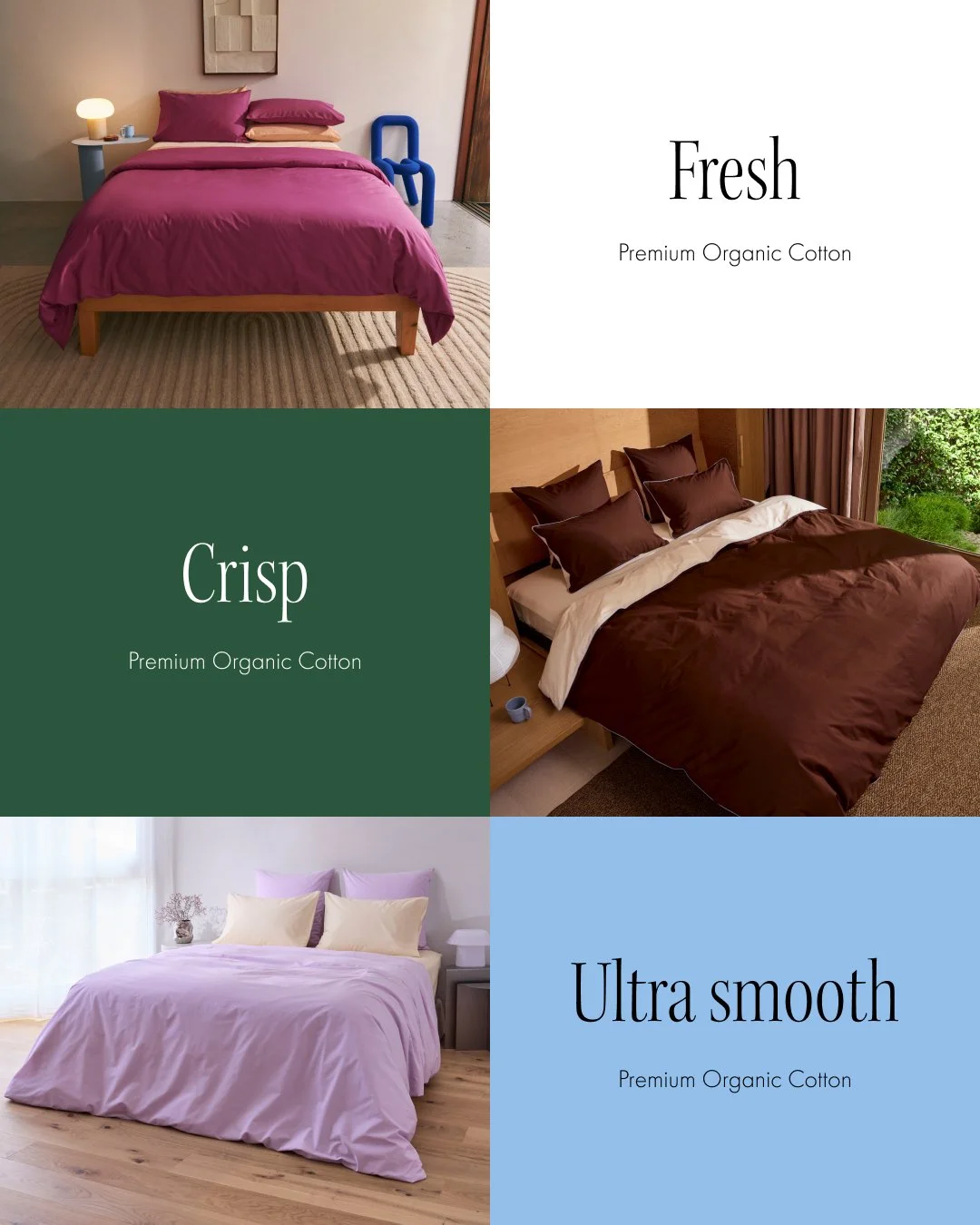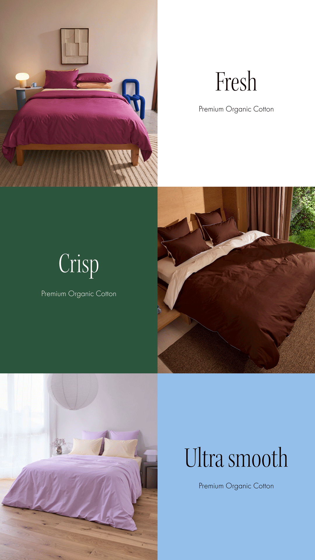 The cotton BAU ads lean into a bolder grid style, differentiating these assets from linen, and highlighting the crisp, colourful nature of the cotton range. The type treatment is more dynamic yet still sitting comfortably within the Bed Threads classic style, and the animation adds a playful, contemporary element.