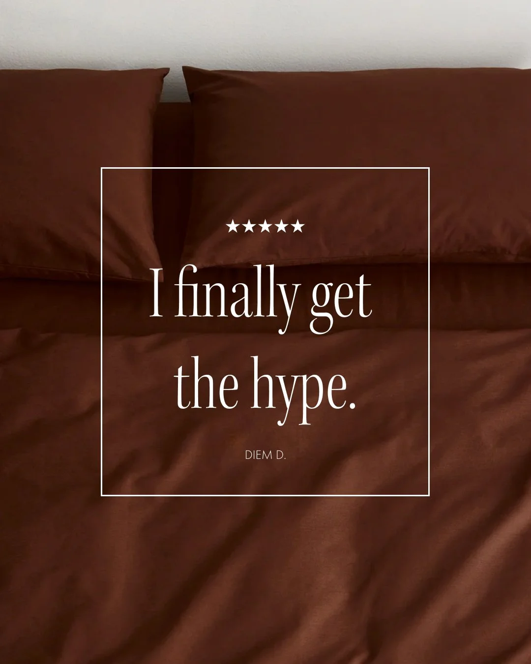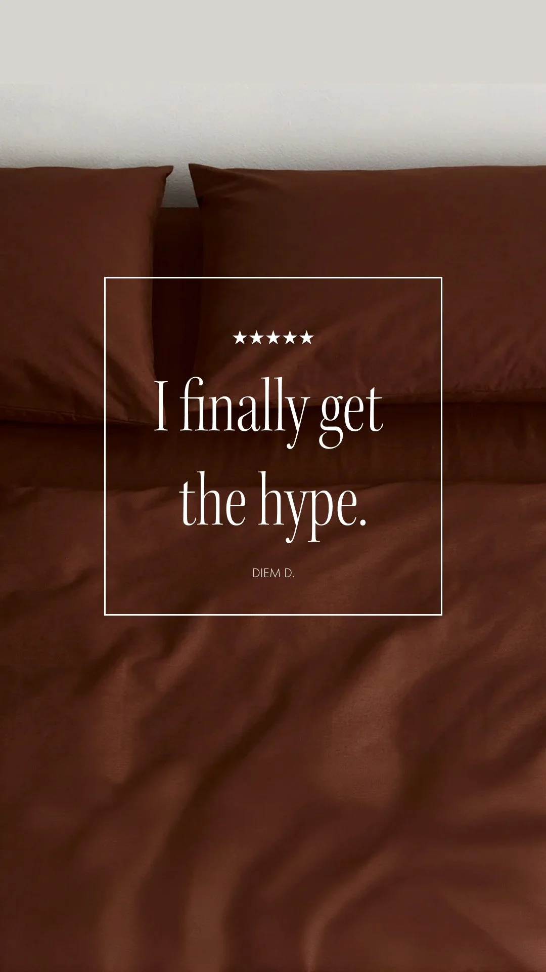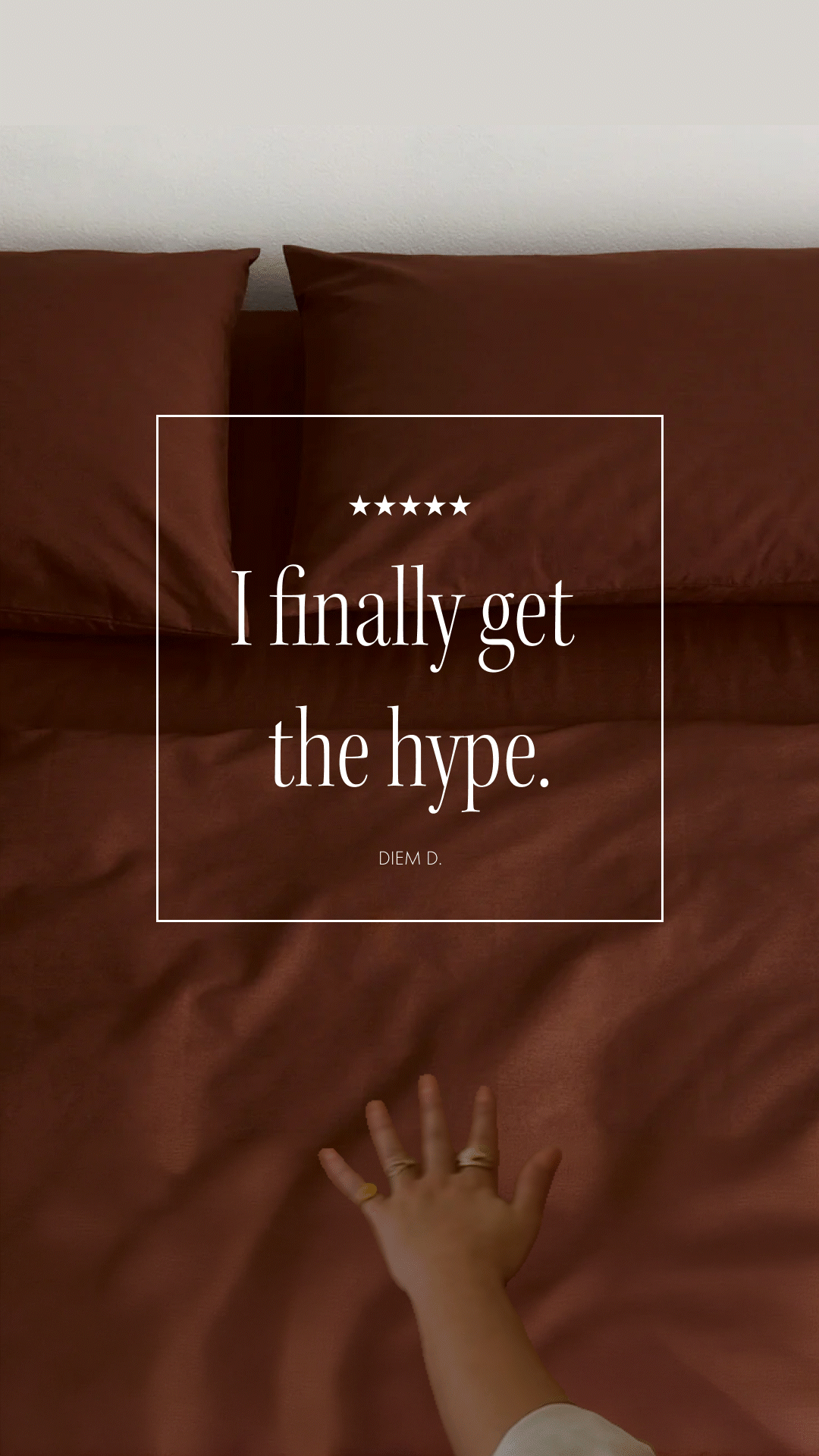 This relatable and tactile execution emphasis the relief felt in the review (‘fiiinally!’), and creates that very recognisable and visceral feeling of new luxurious bedding.